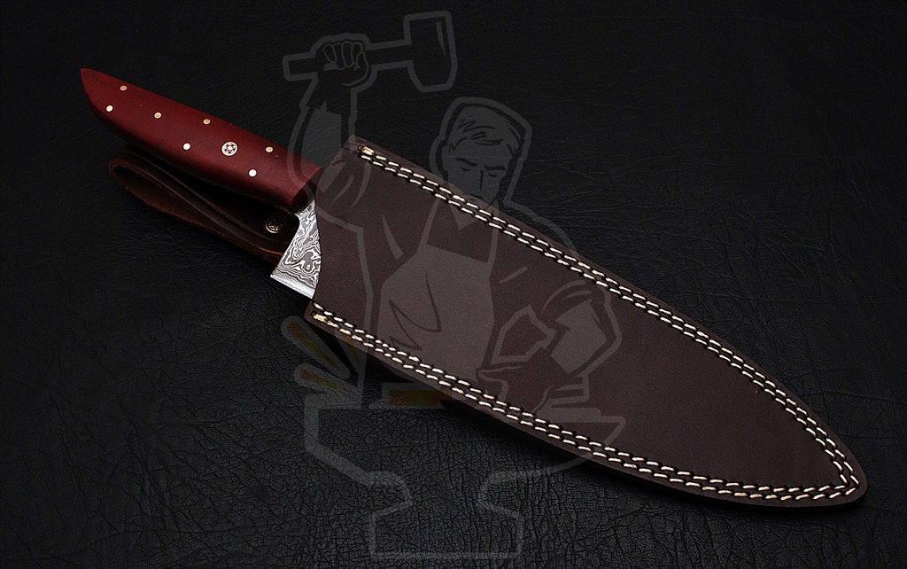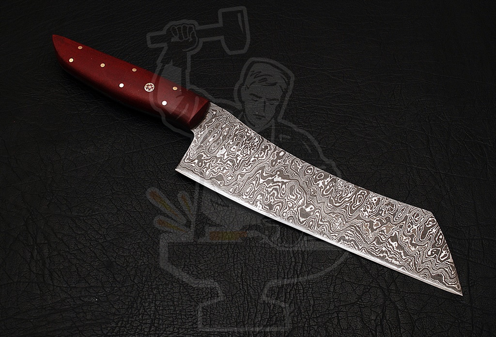 Damascus Chef/Kitchen knivesChef Knife — Damascus Chef/Kitchen knives. Overall Length 12.50″ • Blade Length: 7.5″ • Damascus Steel Blade Kitchen Knife