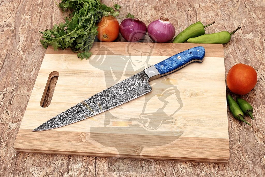 Damascus Chef/Kitchen knivesChef Knife — Damascus Chef/Kitchen knives. Damascus Chef Knife • Overall Length: 12.8″ • Blade Length: 8.25″