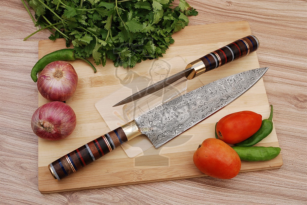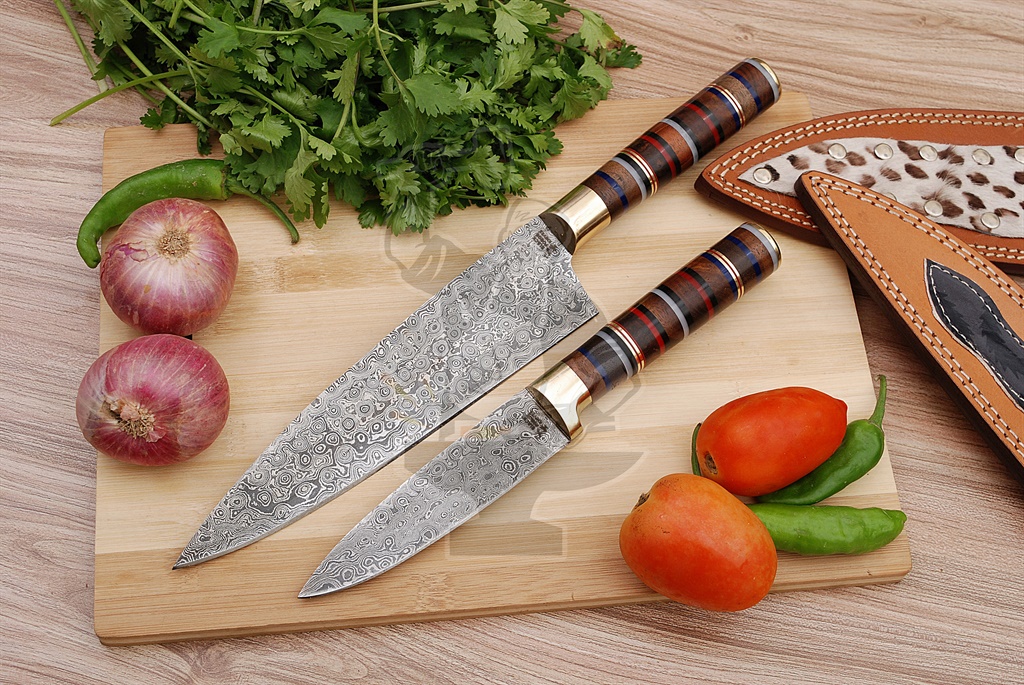 Damascus Kitchen knife SetChef Knife set (02 piece) — Damascus Kitchen knife Set. DESCRIPTION: • Damascus steel Blade Chef & Pairing Knife Set • Chef Knife Overall Length: 13.5″