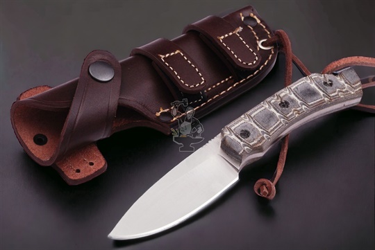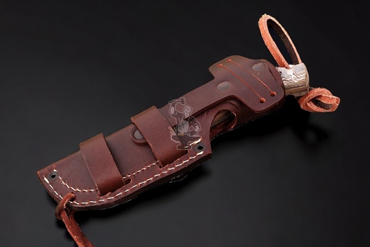 – Micarta Handle,Lanyard Hole with Leather Strap.