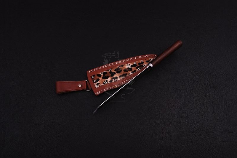 D2 STEEL HAND FORGED BLADE KICTHEN/CHEF knife, STEEL GUARD WITH WALNUT WOOD HANDLE, GENUINE LEATHER SHEATH