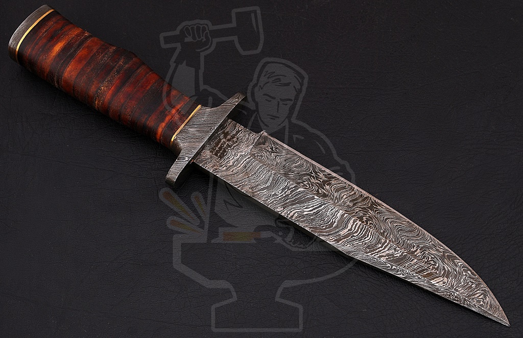 – Damascus Steel Hunting Bowie Blade (1095 & 15n20)