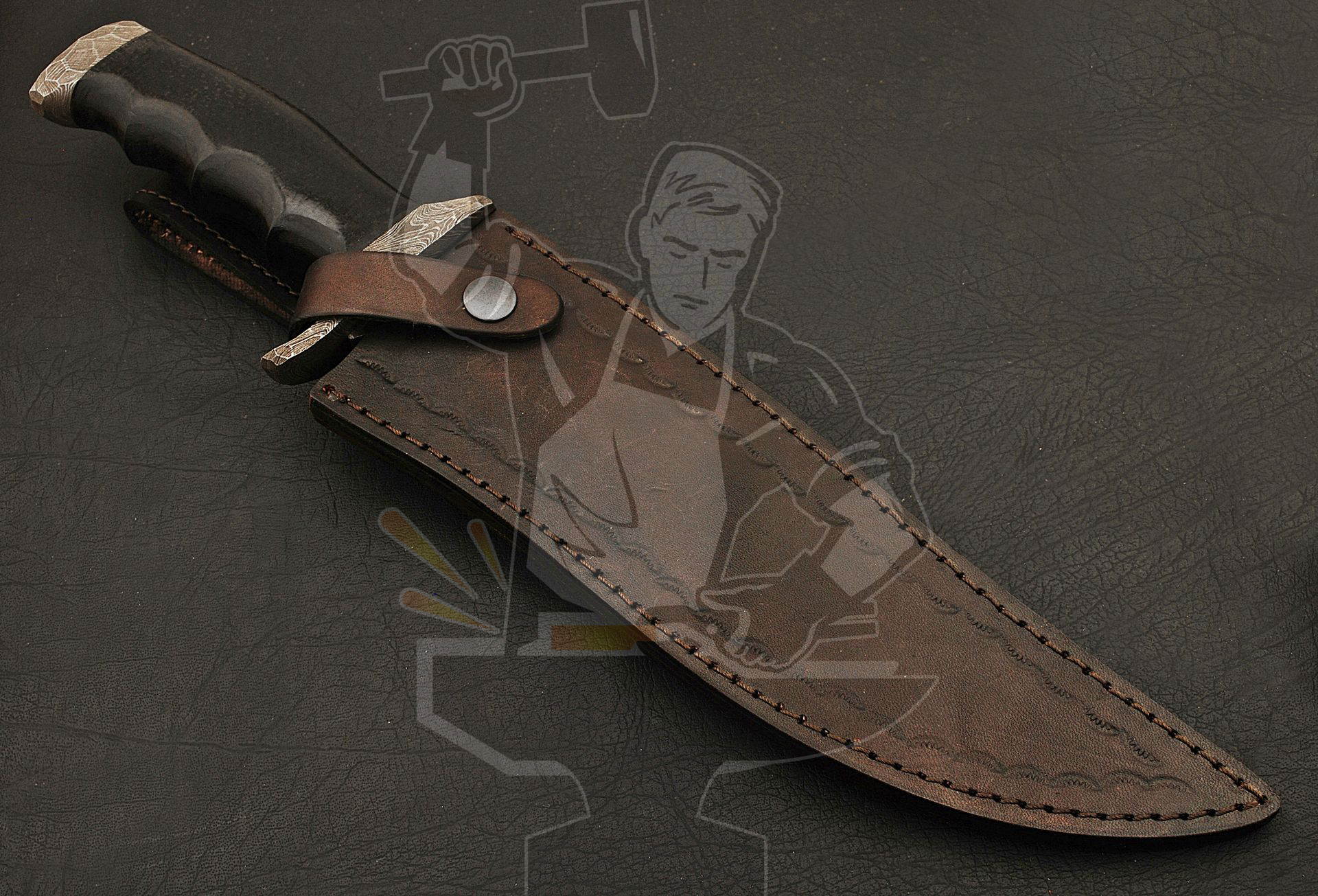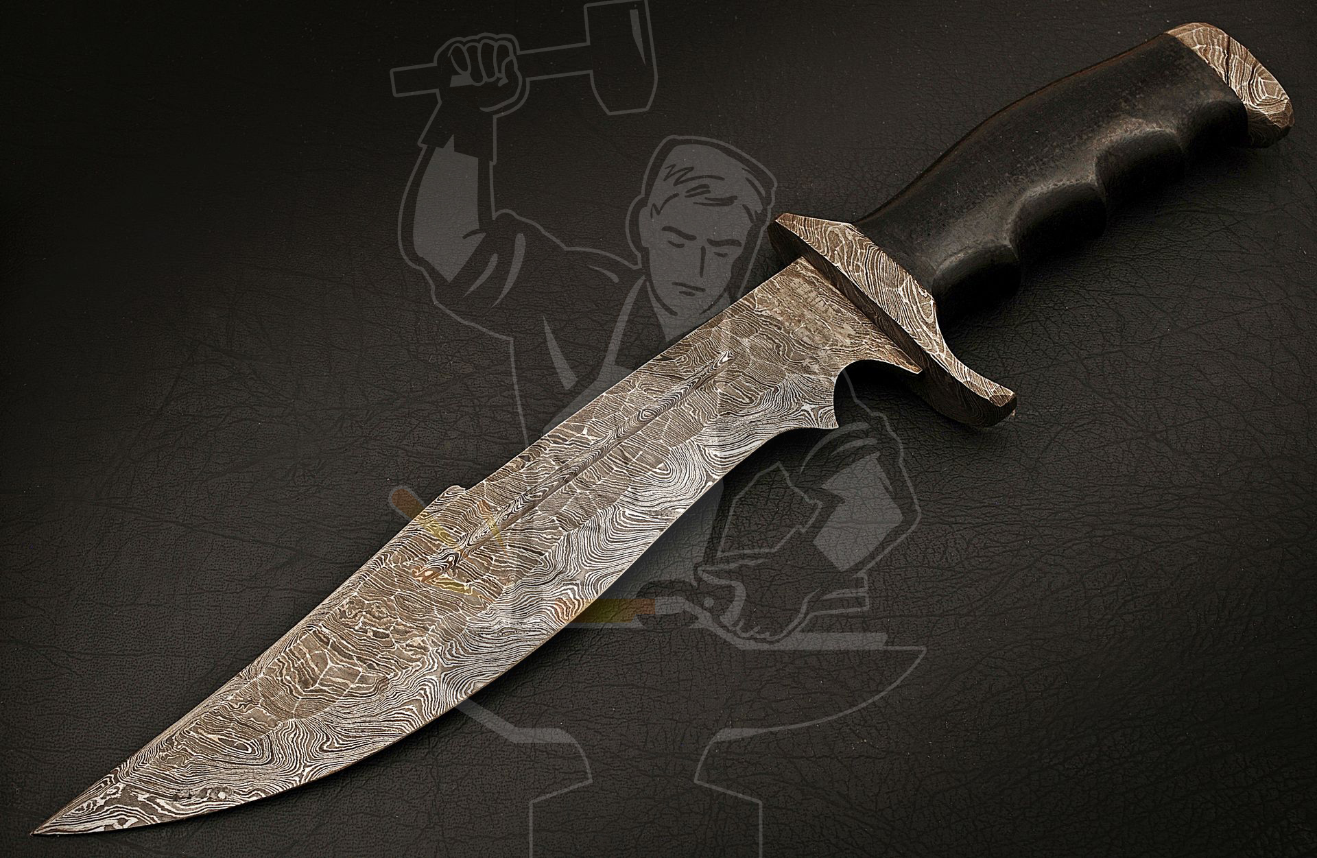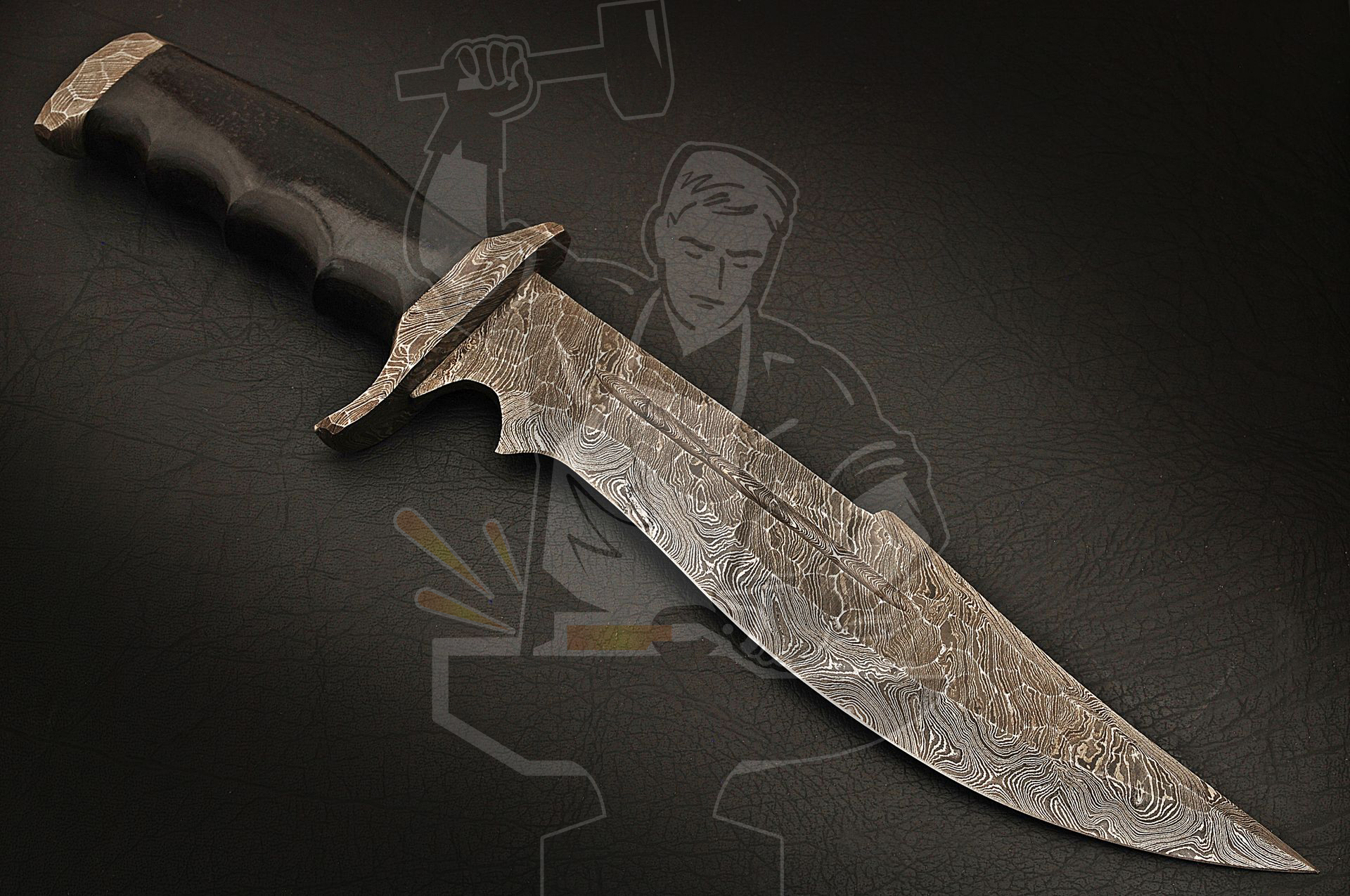 Damascus Bowie KnivesDamascus Bowie knives — Damascus Bowie Knives. Damascus steel blade Bowie • Overall Length: 14.5″ • Blade Length: 9.5″ (Flint Knapped pattern ,Rock pattern blade)