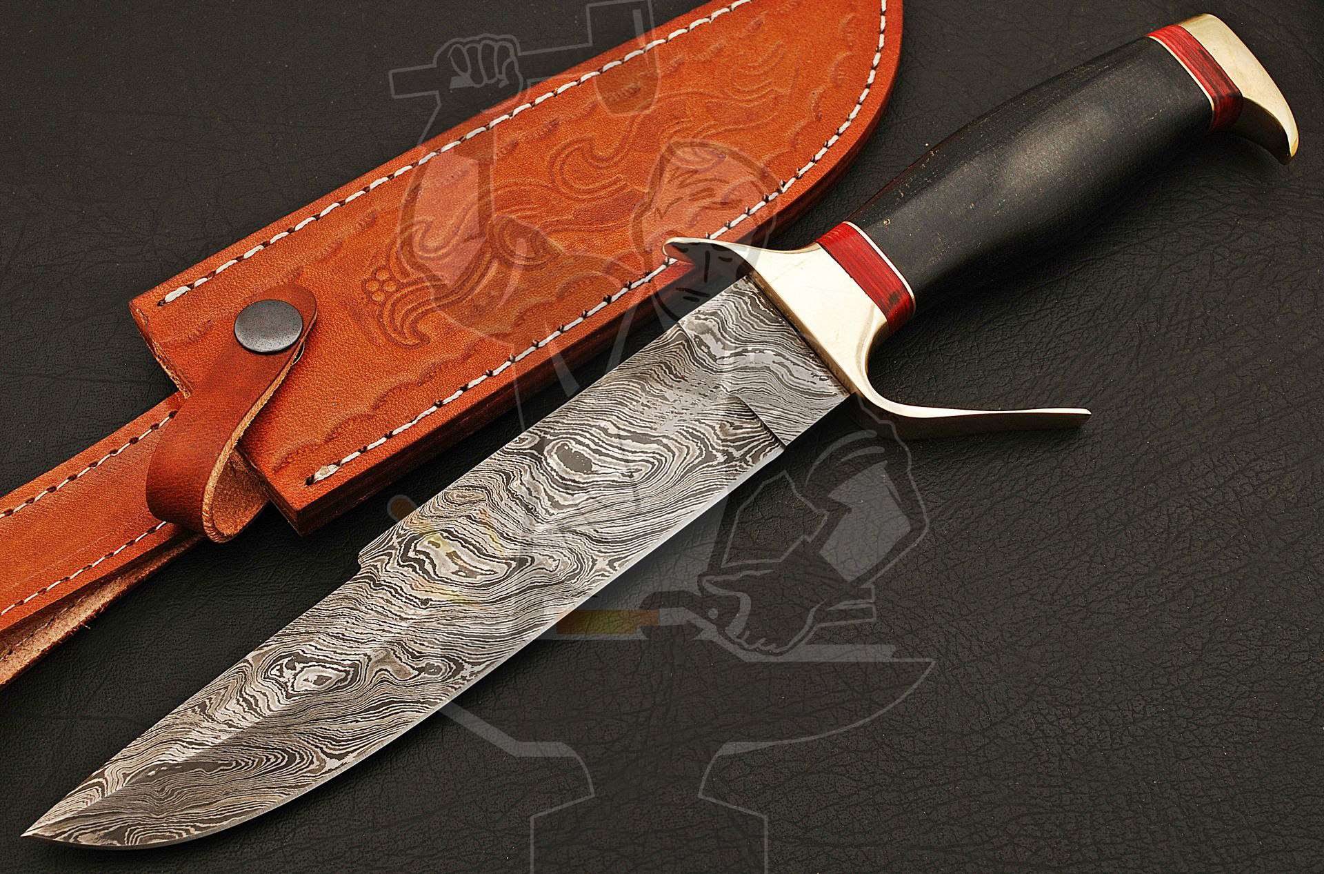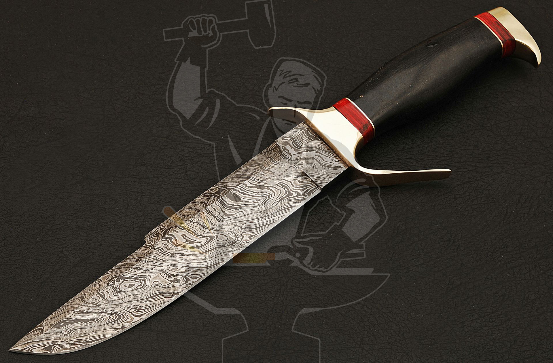 Damascus Bowie KnivesDamascus Bowie knives — Damascus Bowie Knives. Overall Length: 13″ • Blade Length: 7.5″ • Brass + Black Micarta + Pakkawood Handle