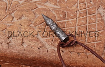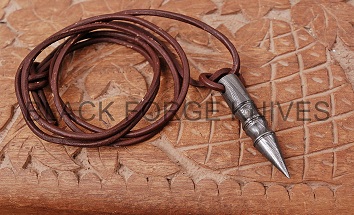 -DAMASCUS STEEL BULLET PENDANT/NECKLACE WITH LEATHER STRAP.