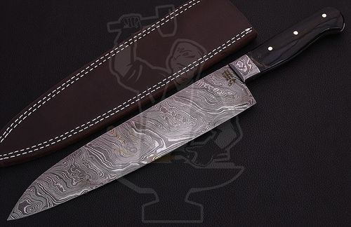 - HANDLE: Damascus bolster ,BUFFALO HORN