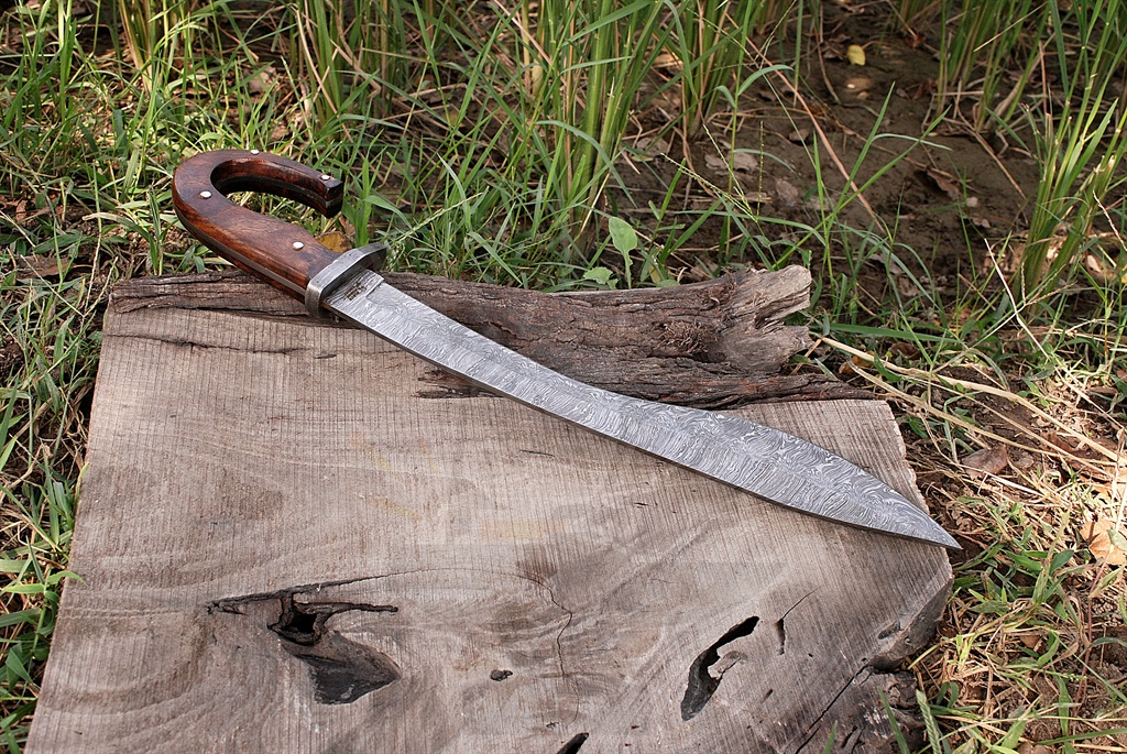 Damascus SwordsDamascus Falcata Knife — Damascus Swords. Damascus Steel Falcata • Overall Length: 22.25″ • Blade Length: 16″