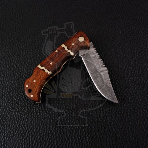 DAMASCUS FOLDING KNIFE — Damascus Pocket/Folding Knives. Lock back Folding Knife- Overall Length: 6.6″ • Blade Length: 3.00″ • Closed Length: 3.60″
