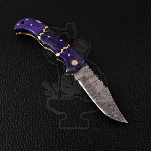 DAMASCUS FOLDING KNIFE — Damascus Pocket/Folding Knives. Lock back Folding Knife- Overall Length: 6.6″ • Blade Length: 3.00″ • Closed Length: 3.60″