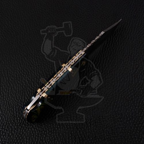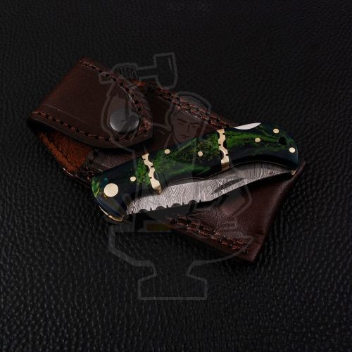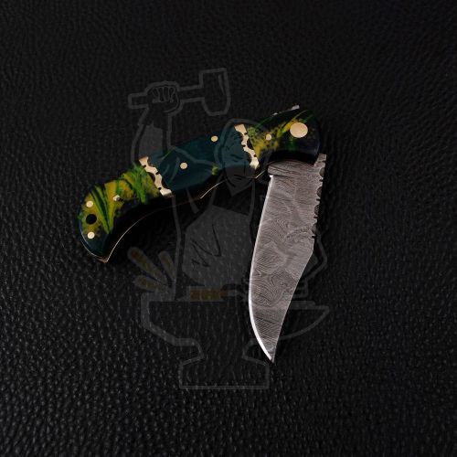 DAMASCUS FOLDING KNIFE — Damascus Pocket/Folding Knives. Lock back Folding Knife- Overall Length: 6.6″ • Blade Length: 3.00″ • Closed Length: 3.60″