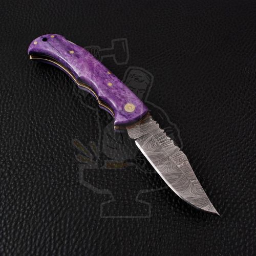 Damascus Pocket/Folding KnivesDAMASCUS FOLDING KNIFE — Damascus Pocket/Folding Knives. Lock back Folding Knife- Overall Length: 6.6″ • Blade Length: 3.00″ • Closed Length: 3.60″
