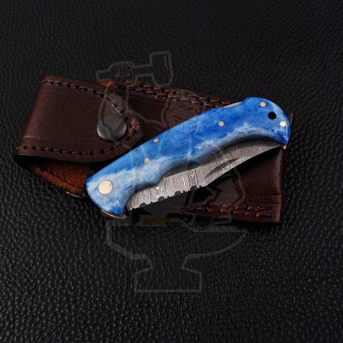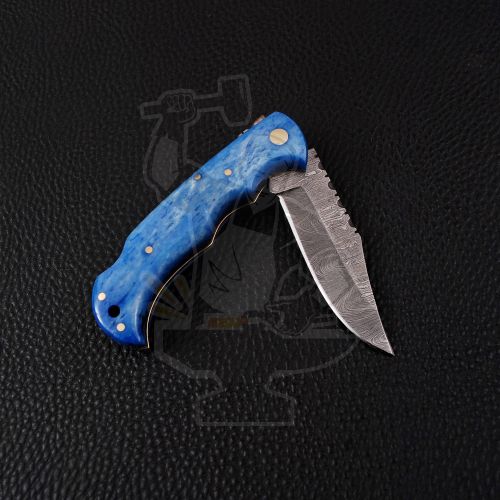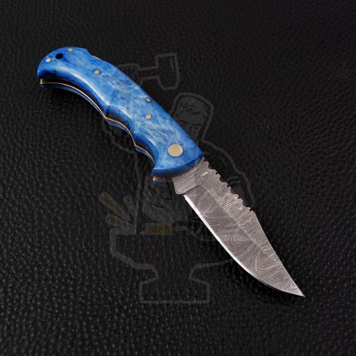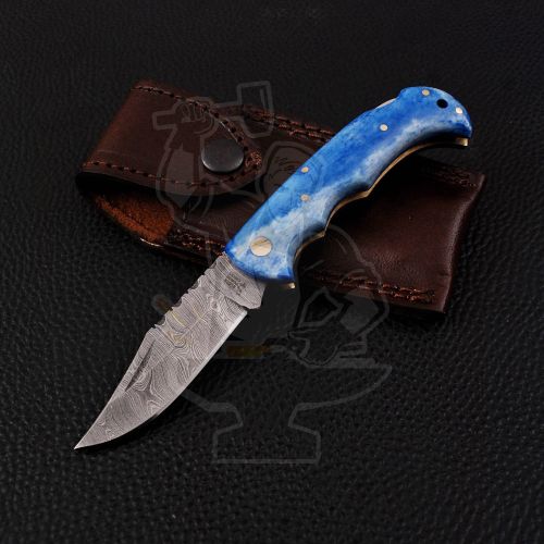 DAMASCUS FOLDING KNIFE — Damascus Pocket/Folding Knives. Lock back Folding Knife- Overall Length: 6.6″ • Blade Length: 3.00″ • Closed Length: 3.60″