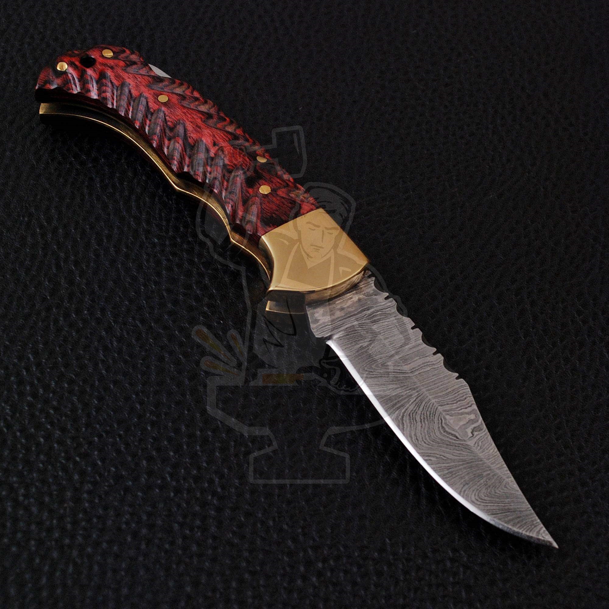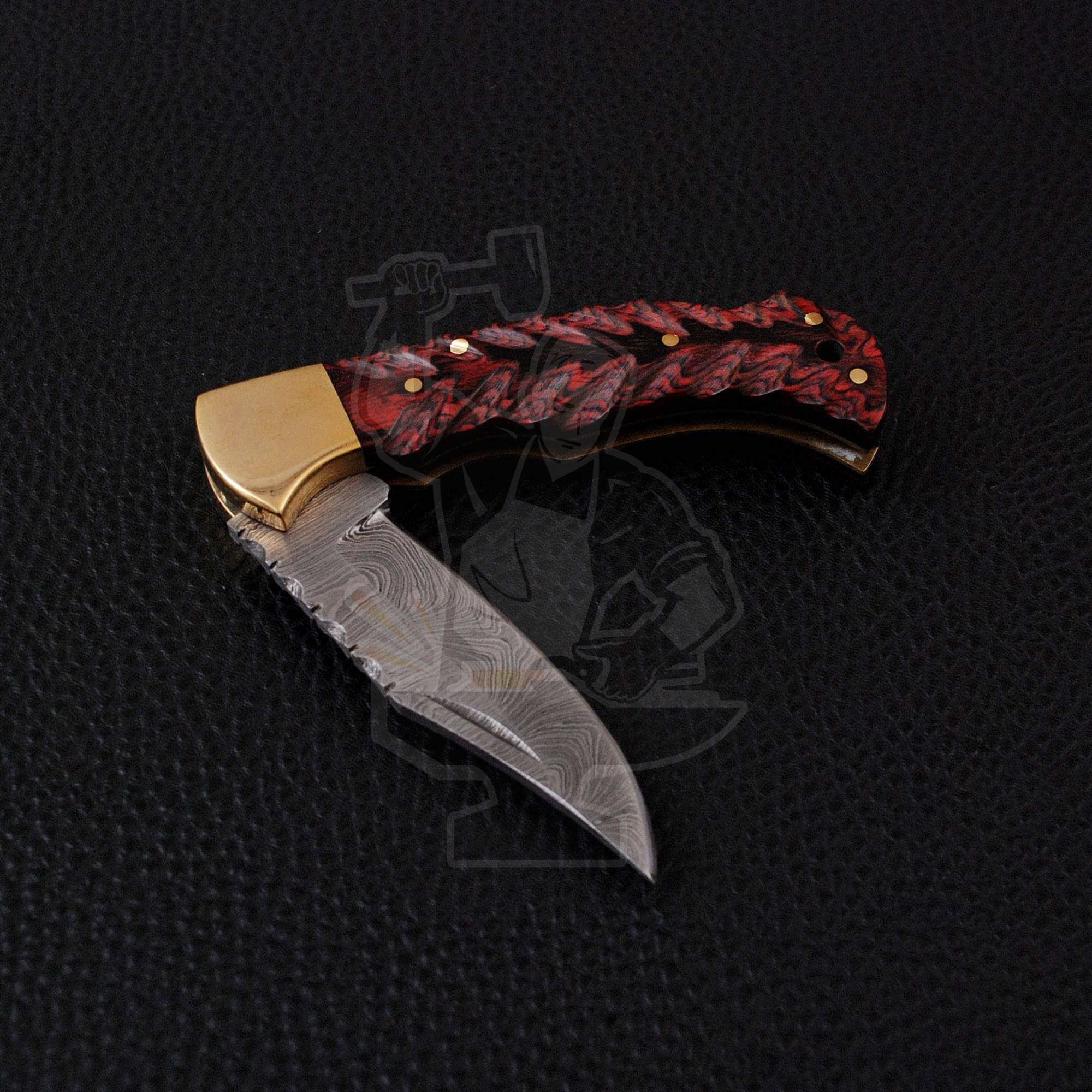 Damascus Pocket/Folding KnivesDAMASCUS FOLDING KNIFE — Damascus Pocket/Folding Knives. Lock back Folding Knife- Overall Length: 6.6″ • Blade Length: 3.00″ • Closed Length: 3.60″
