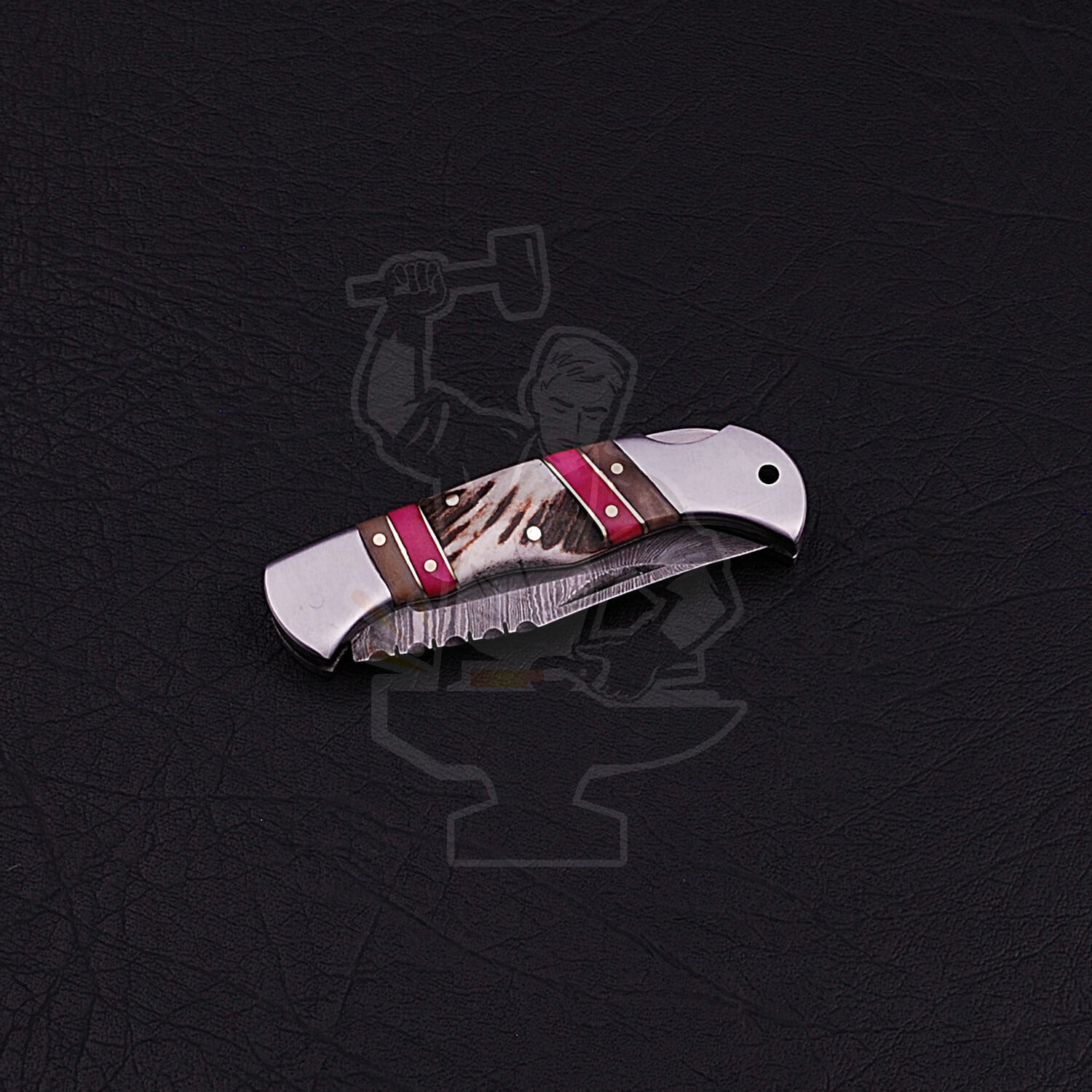 Damascus Pocket/Folding KnivesDAMASCUS FOLDING KNIFE — Damascus Pocket/Folding Knives. Lock back Folding Knife- Overall Length: 6.6″ • Blade Length: 3.00″ • Closed Length: 3.60″