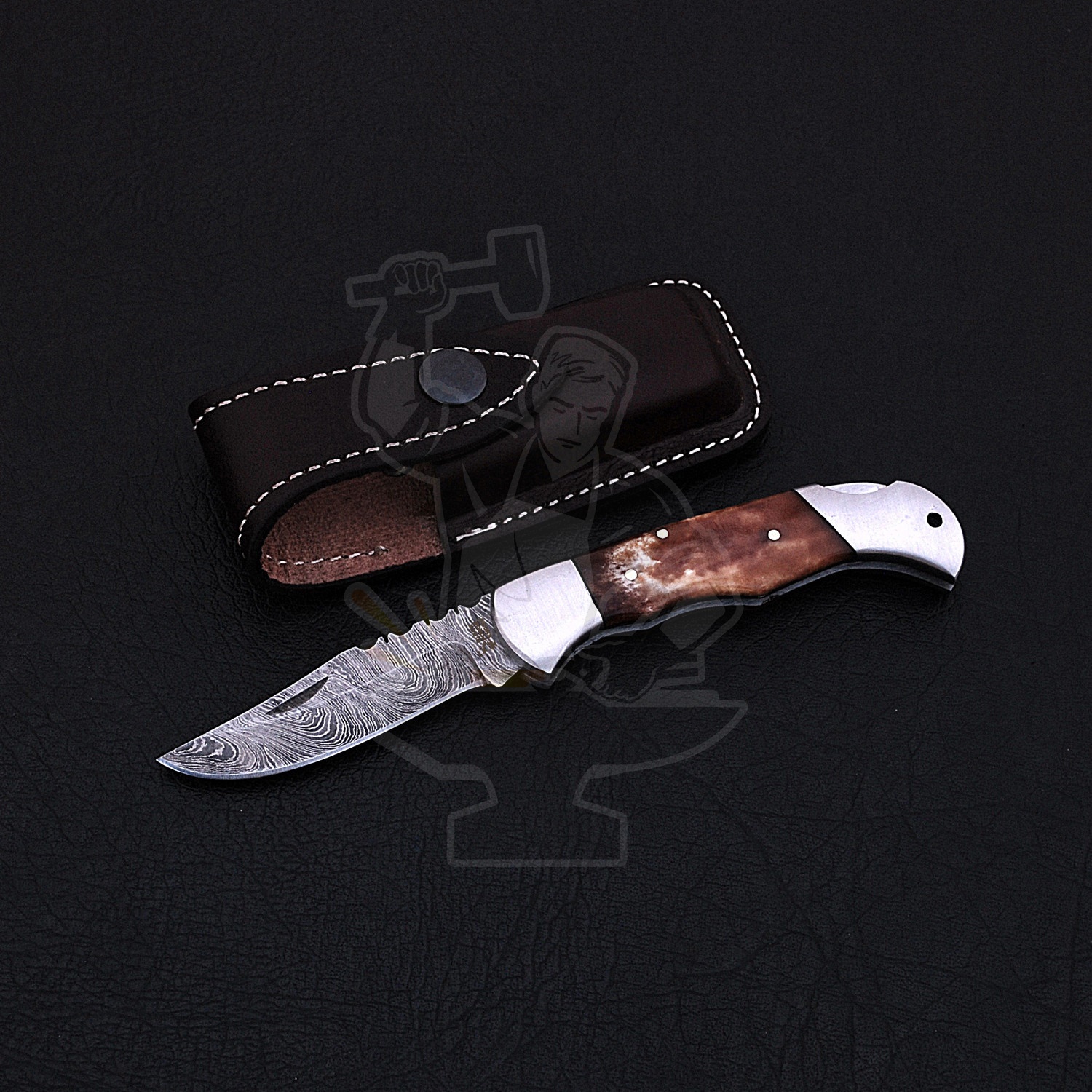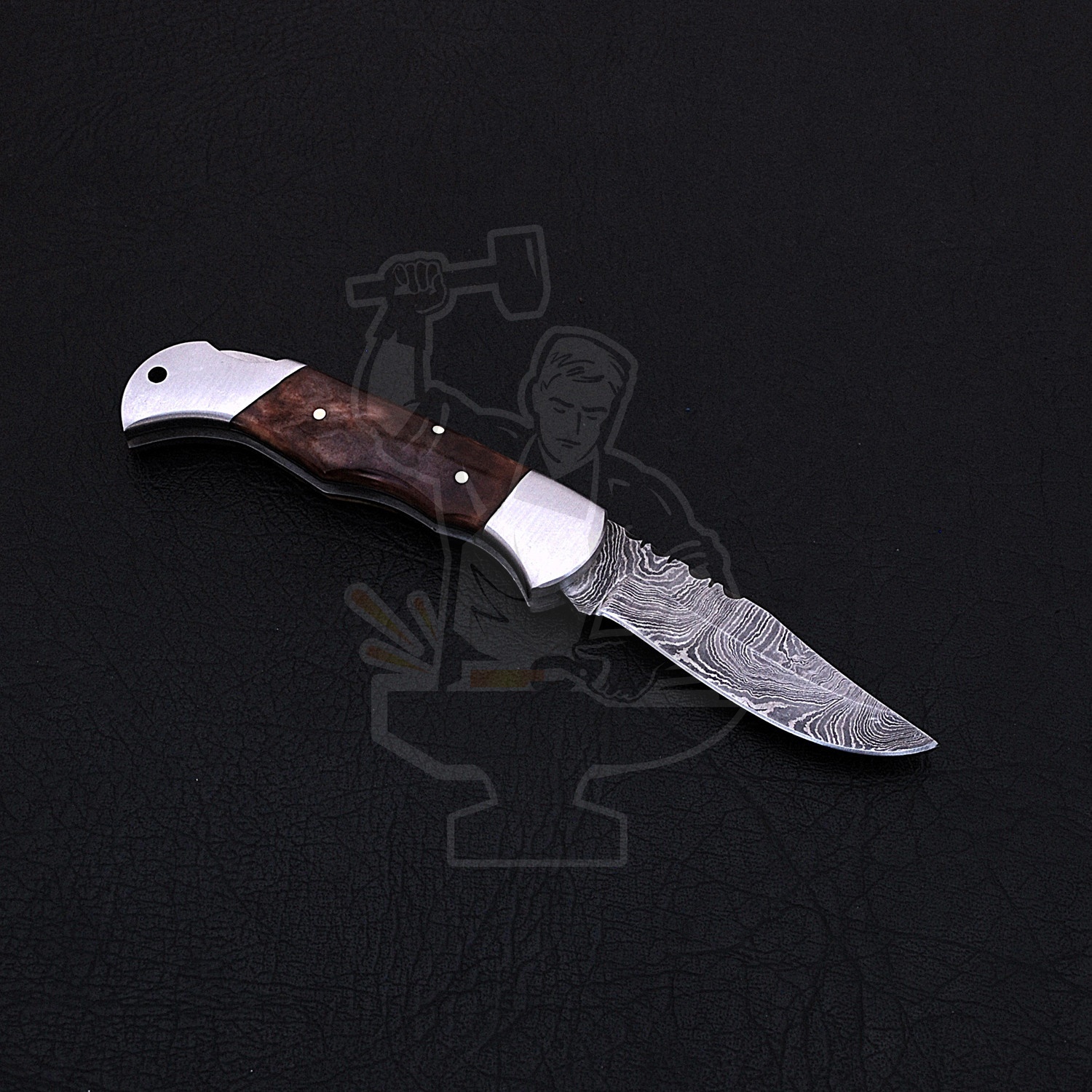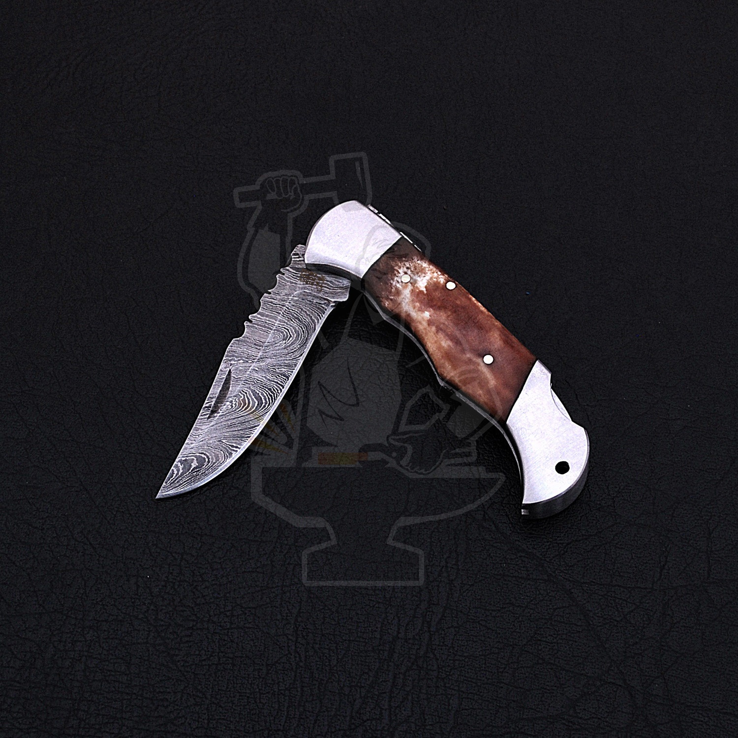 DAMASCUS FOLDING KNIFE — Damascus Pocket/Folding Knives. Lock back Folding Knife- Overall Length: 7.1″ • Blade Length: 3.00″ • Closed Length: 4.1″
