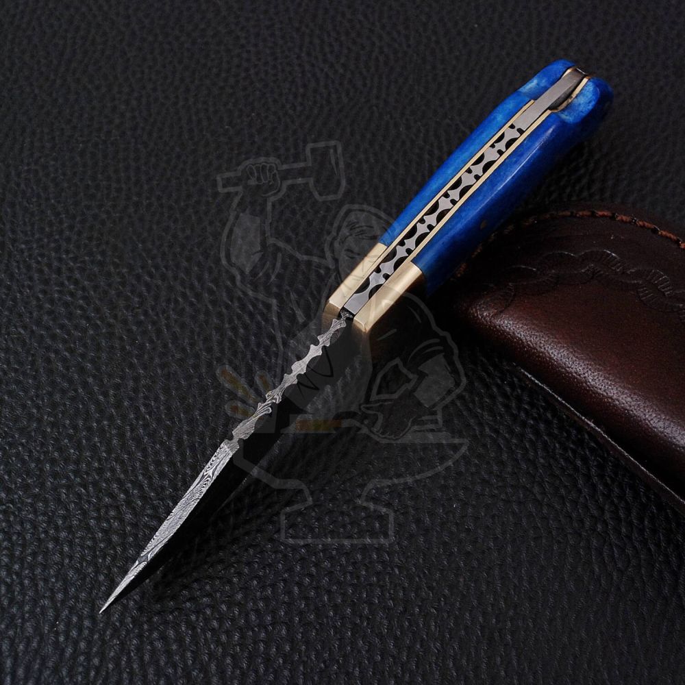 Damascus Pocket/Folding KnivesDAMASCUS FOLDING KNIFE — Damascus Pocket/Folding Knives. Lock back Folding Knife- Overall Length: 6.6″ • Blade Length: 3.00″ • Closed Length: 3.60″