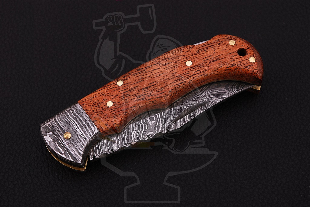 – Walnut Wood Handle With Damascus Bolsters & Brass Liners, And Lanyard Hole