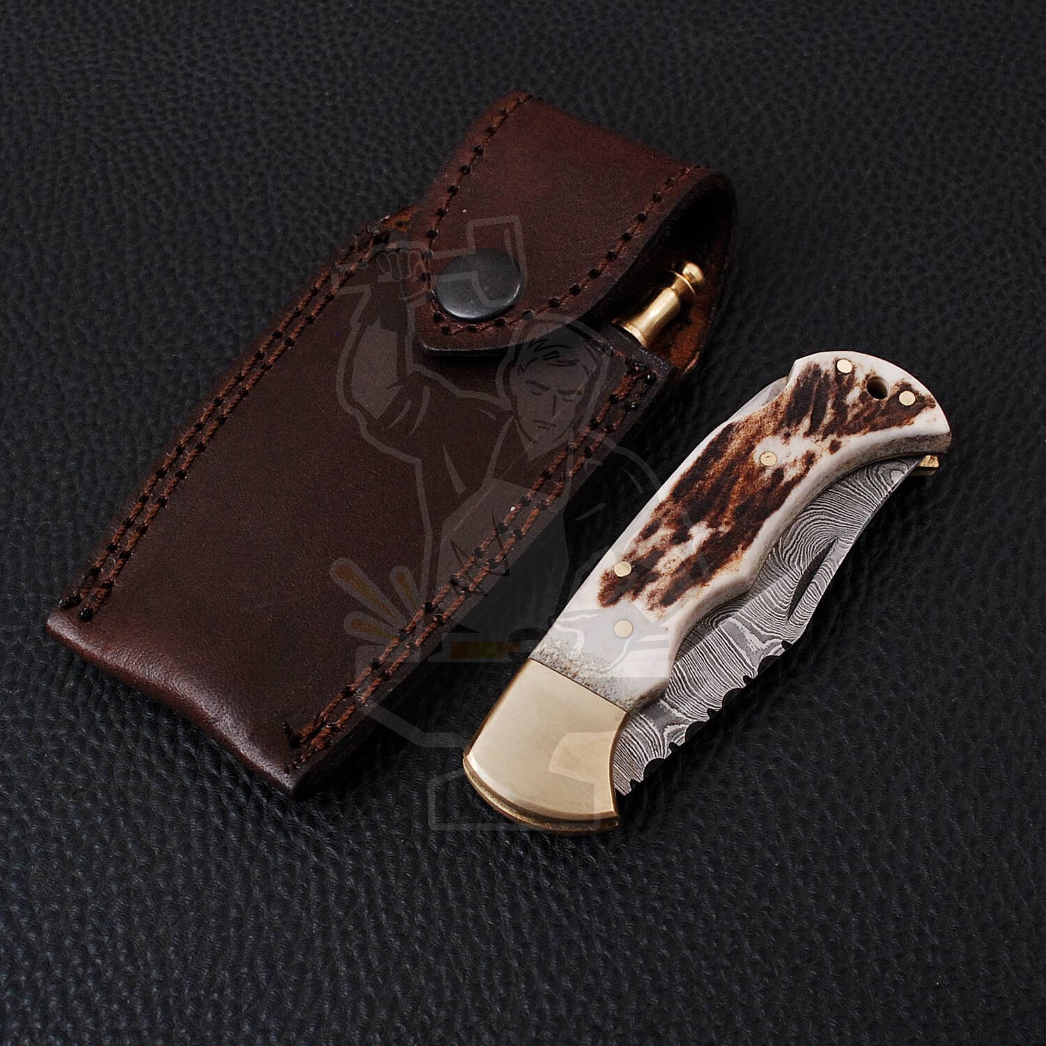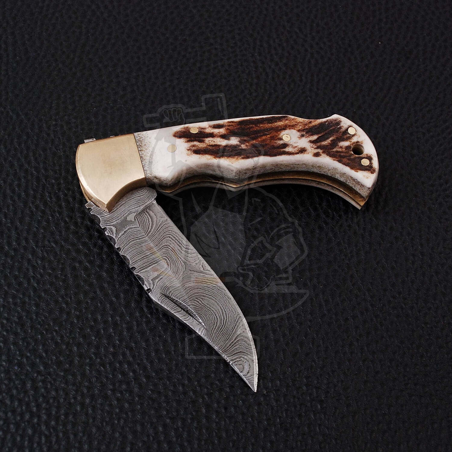 Damascus Pocket/Folding KnivesDAMASCUS FOLDING KNIFE — Damascus Pocket/Folding Knives. Lock back Folding Knife- Overall Length: 6.6″ • Blade Length: 3.00″ • Closed Length: 3.60″