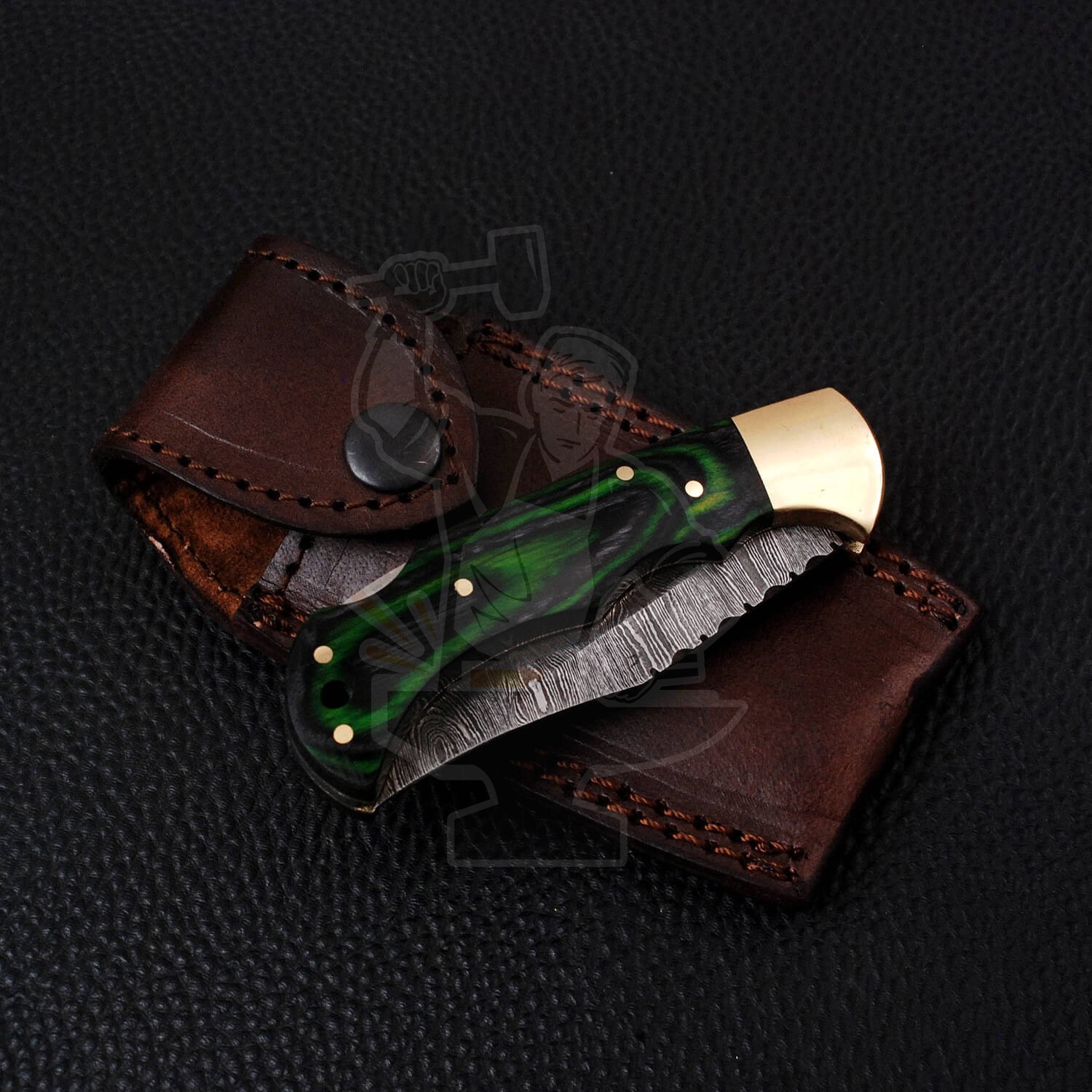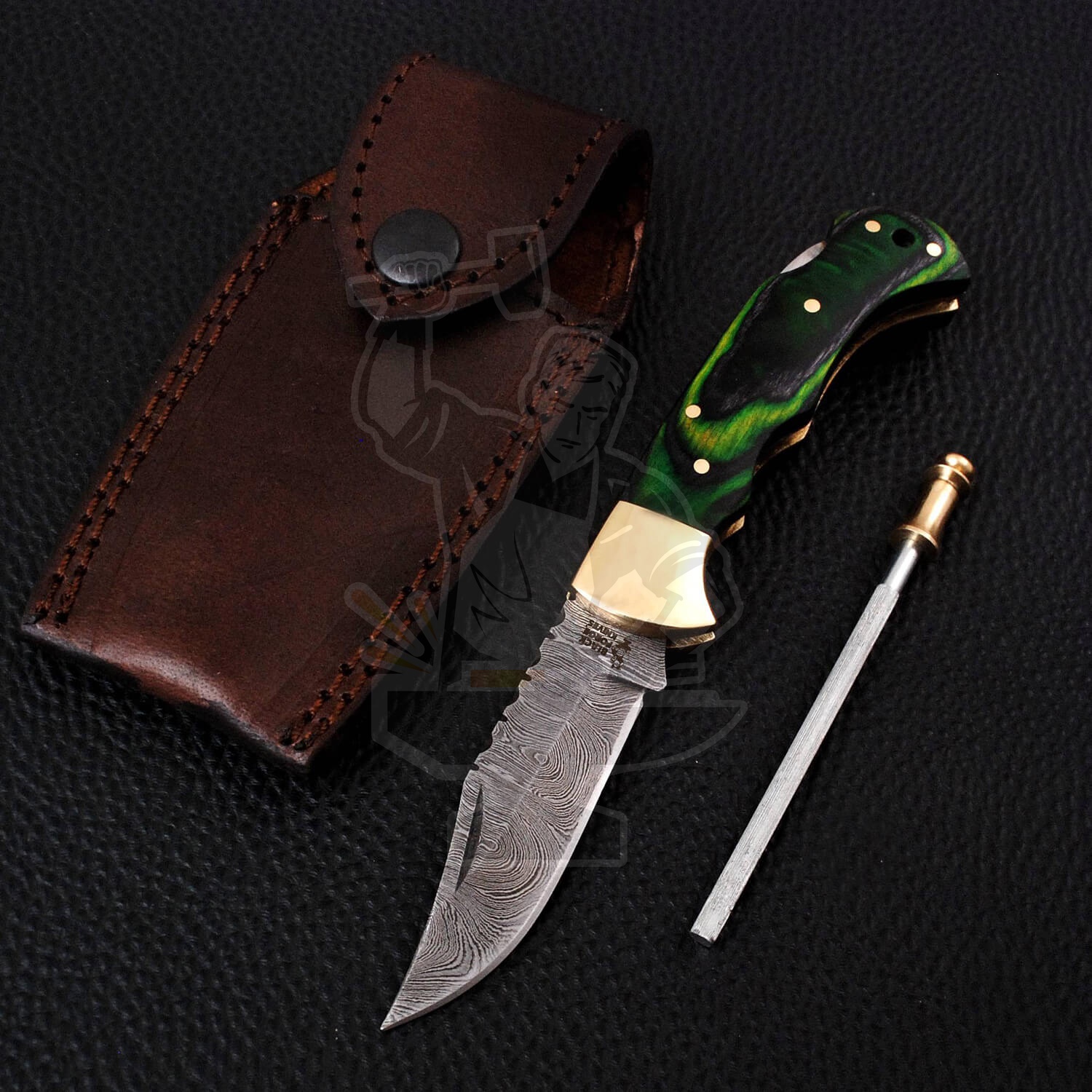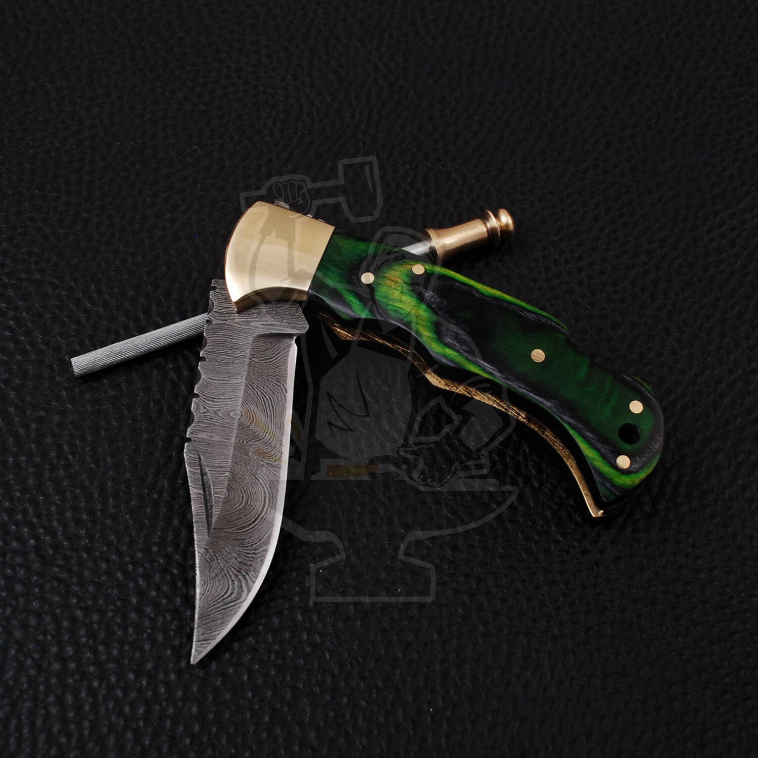 Damascus Pocket/Folding KnivesDAMASCUS FOLDING KNIFE — Damascus Pocket/Folding Knives. Lock back Folding Knife- Overall Length: 6.6″ • Blade Length: 3.00″ • Closed Length: 3.60″