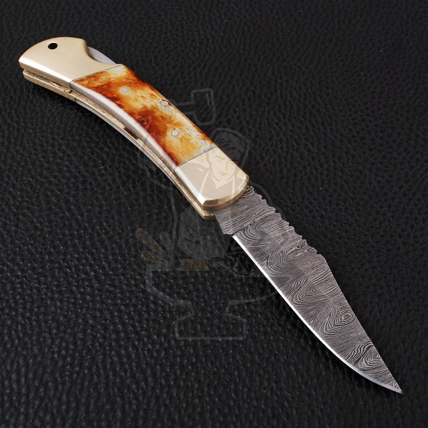 Damascus Pocket/Folding KnivesDAMASCUS FOLDING KNIFE — Damascus Pocket/Folding Knives. Lock back Folding Knife- Overall Length: 7.75″ • Blade Length: 3.50″ • Closed Length: 4.25″