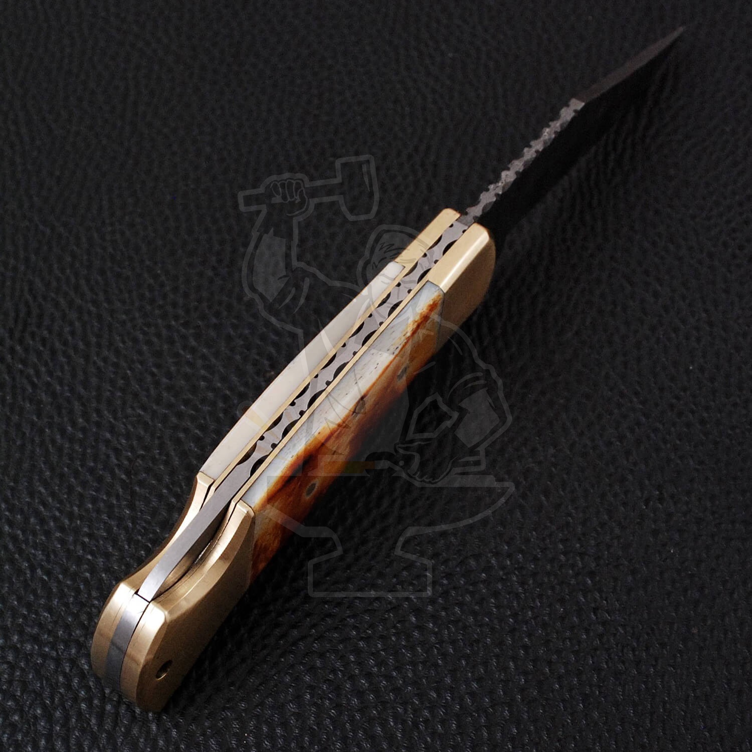 – Burnt Bone + Brass Bolsters + Lanyard Hole.