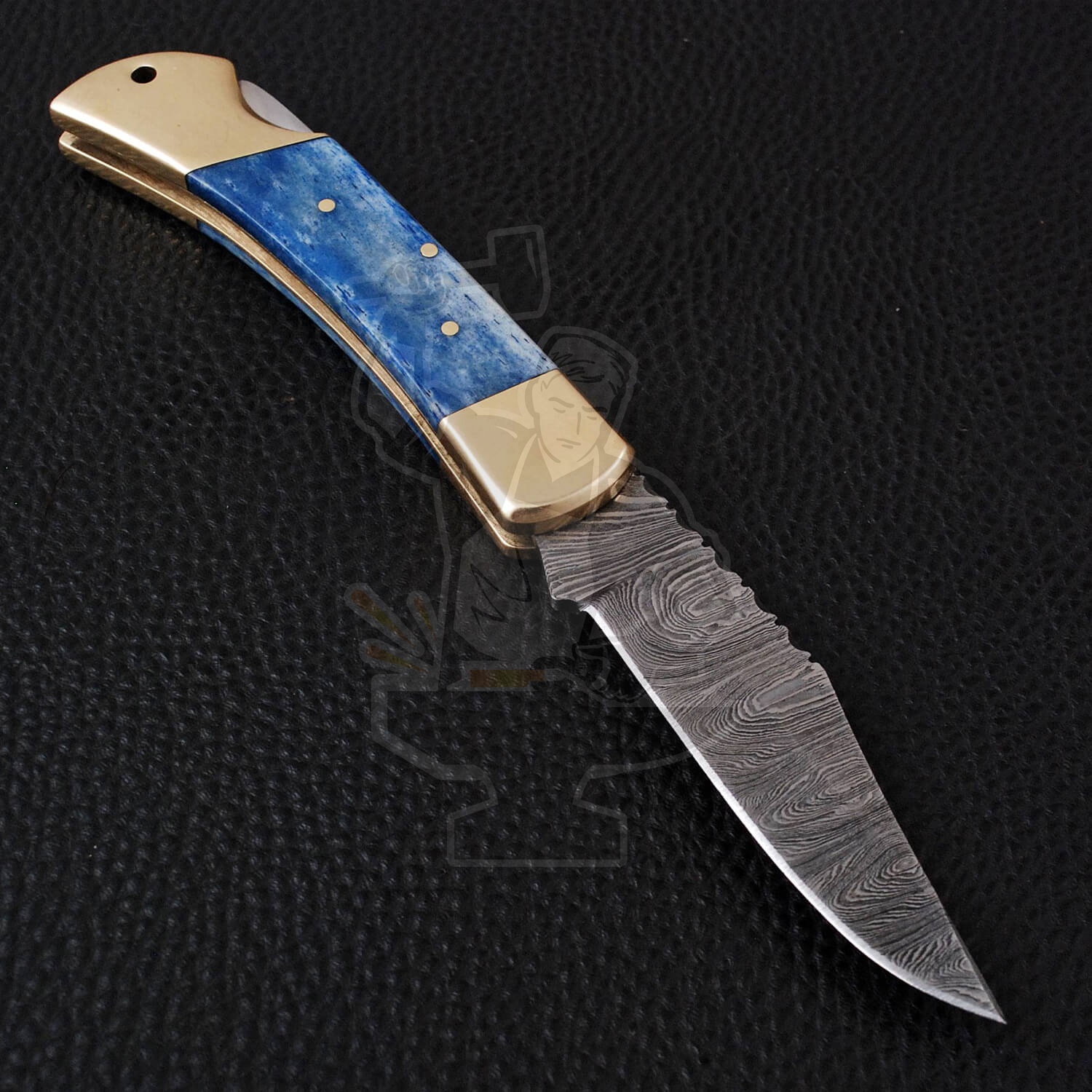 Damascus Pocket/Folding KnivesDAMASCUS FOLDING KNIFE — Damascus Pocket/Folding Knives. Lock back Folding Knife- Overall Length: 7.75″ • Blade Length: 3.50″ • Closed Length: 4.25″