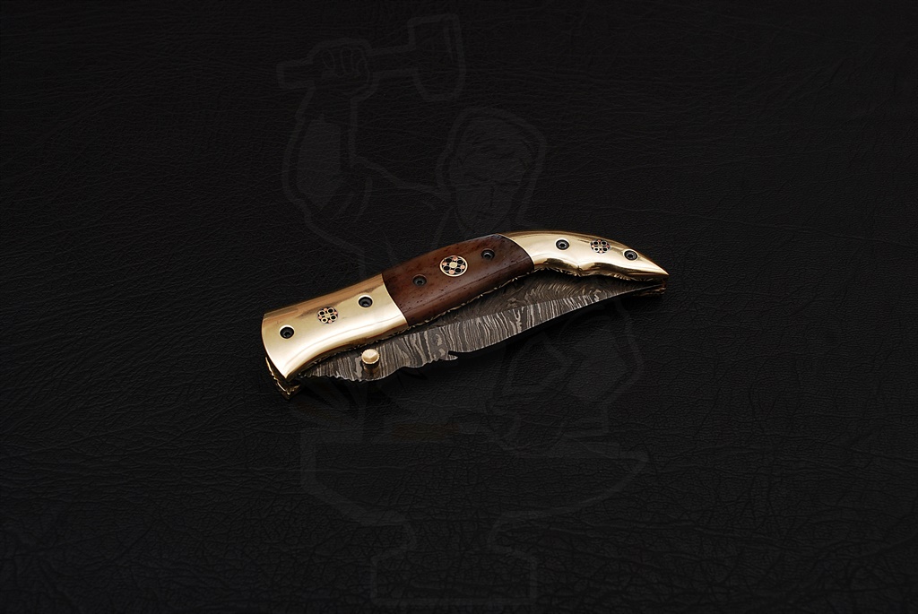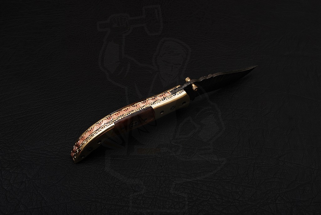 Damascus Handmade Liner Lock Knife — Damascus Pocket/Folding Knives. • Damascus steel handmade Liner Lock Knife • Overall Length: 8.5″