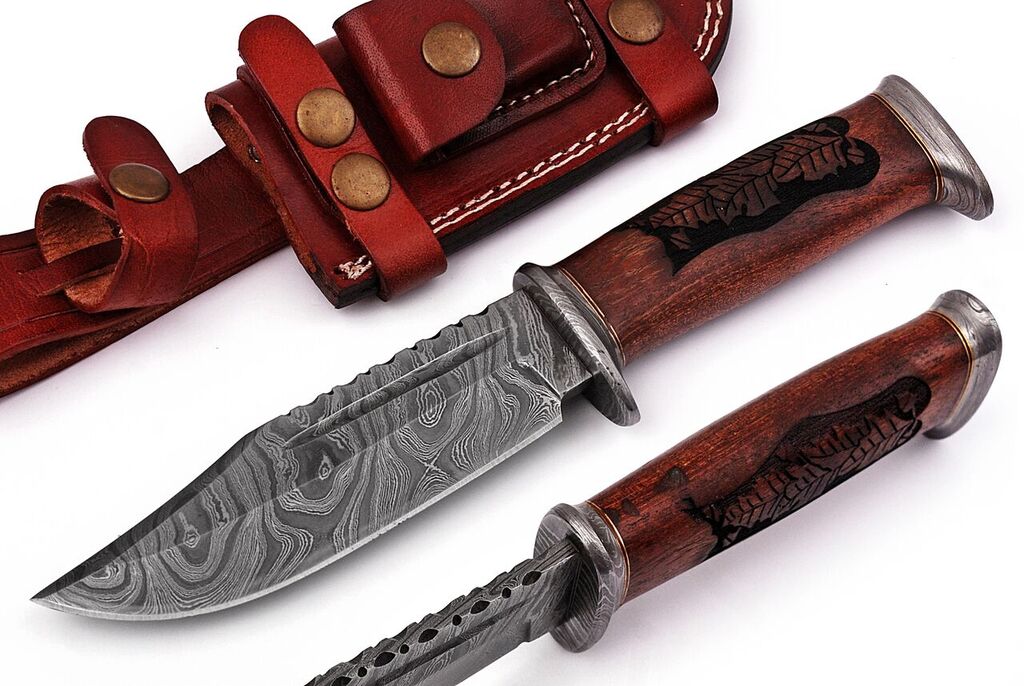Damascus Bowie KnivesDAMASCUS HUNTING KNIFE — Damascus Bowie Knives. OVERALL LENGTH:10″INCH