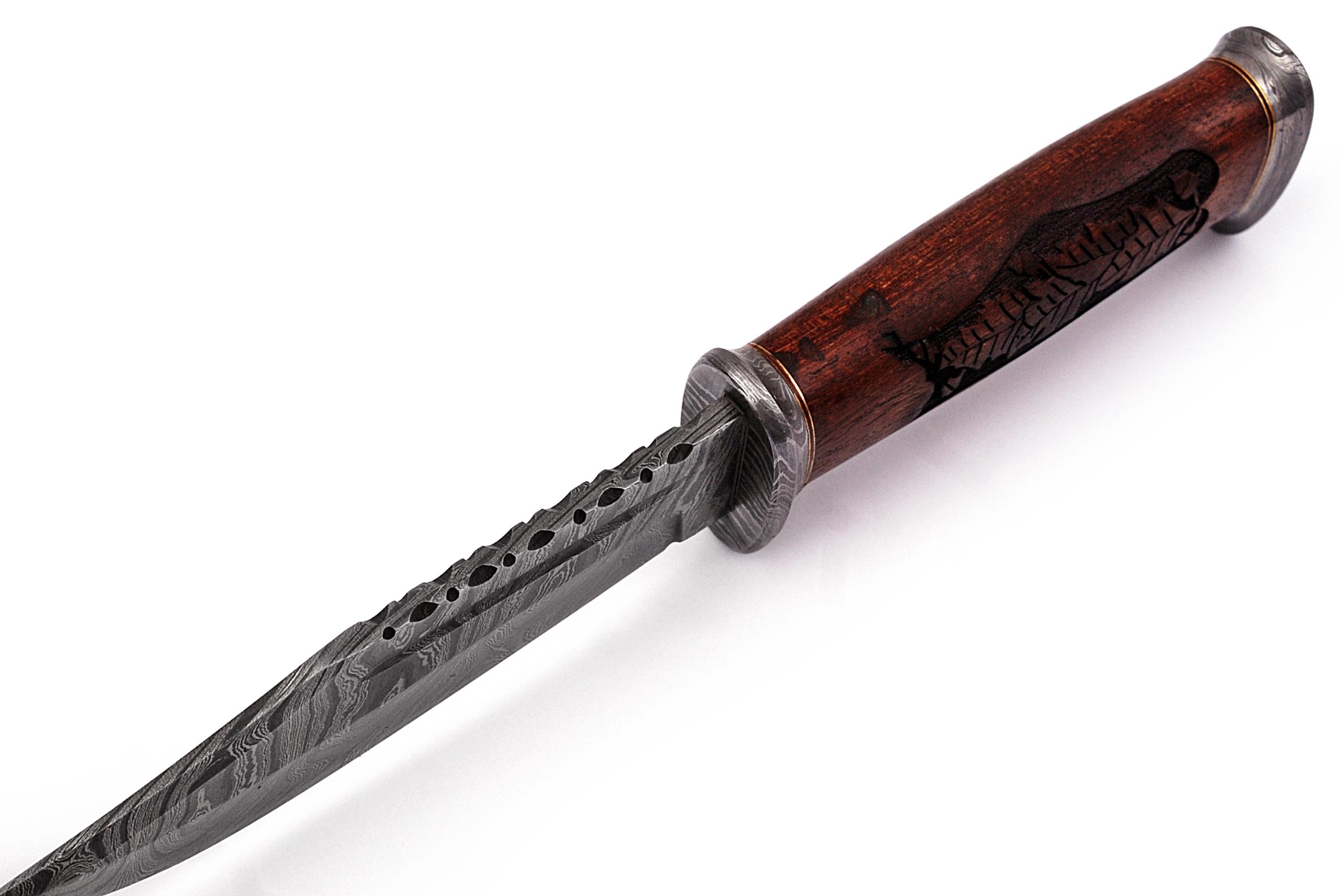 DAMASCUS STEEL BLADE HUNTING BOWIE KNIFE,DAMASCUS GUARD & END CAP,ENGRAVED WALNUT WOOD HANDLE, WITH…