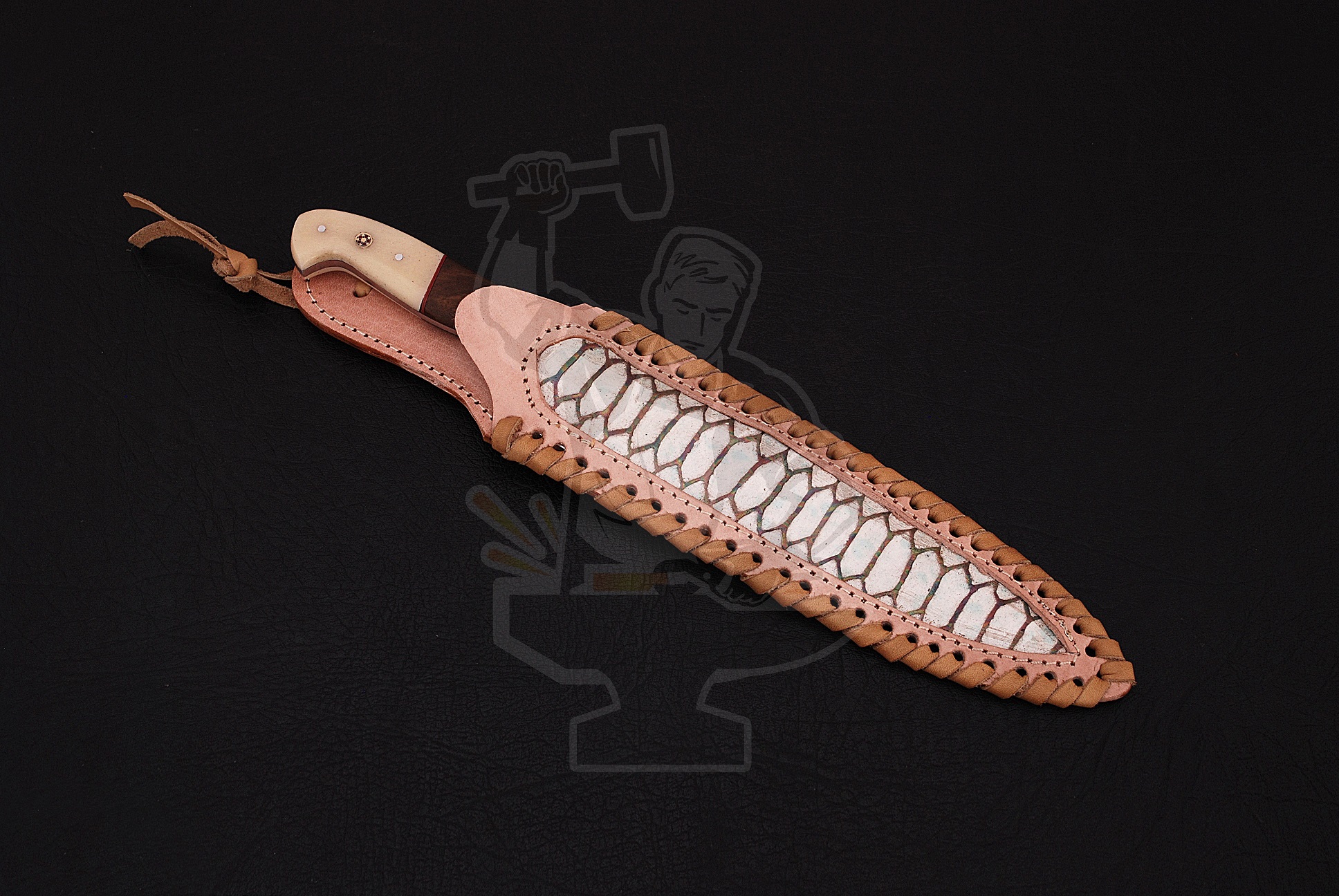 - HANDLE:BRASS BOLSTER,ROSE WOOD + SMOOTH BONE WITH MOSAIC PINS & RED FIBRE SPACERS