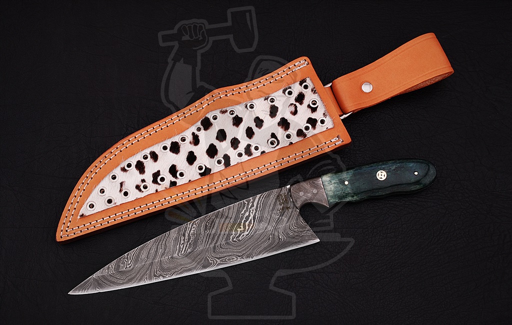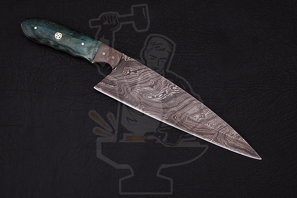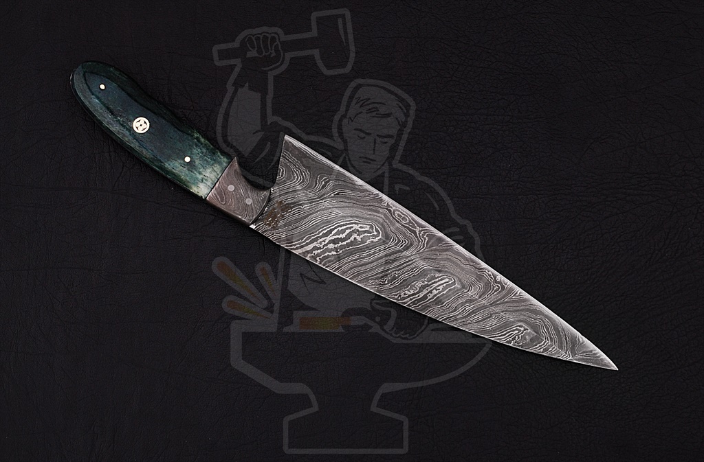 Damascus Chef/Kitchen knivesDAMASCUS KITCHEN KNIFE — Damascus Chef/Kitchen knives. Damascus Steel Blade Chef Knife • Damascus Bolster • Dyed Color Bone With Mosaic Pins Handle