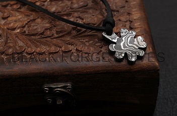 DAMASCUS LEAF PENDANT — Damascus Jewelry. DAMASCUS STEEL LEAF PENDANT/NECKLACE WITH LEATHER STRAP. • PENDANT MATERIAL:1095 & 15N20