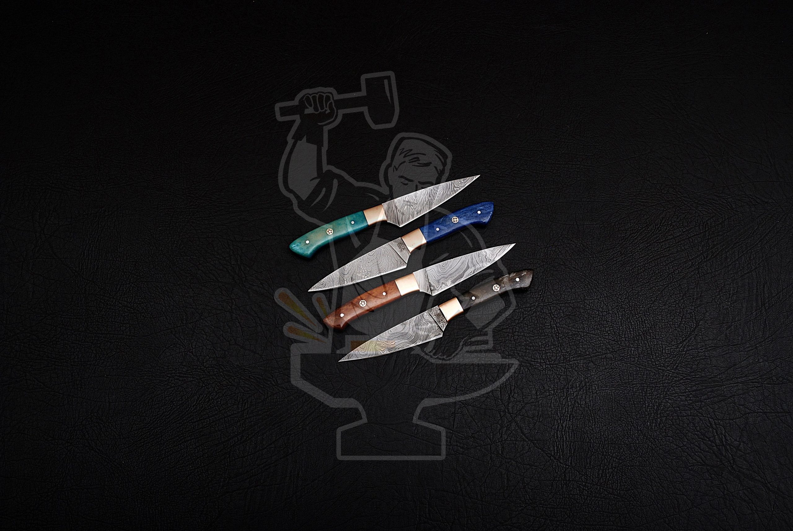 Damascus Pairing Knife Set // 4 Piece Set — Damascus Kitchen knife Set. ALL 4 KNIVES SAME SIZE AND HANDLE