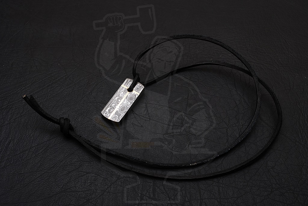 DAMASCUS PENDANT — Damascus Jewelry. DOG TAG STYLE PENDANT WITH CROSS • DAMASCUS STEEL NECKLACE/PENDANT-WITH LEATHER STRAP