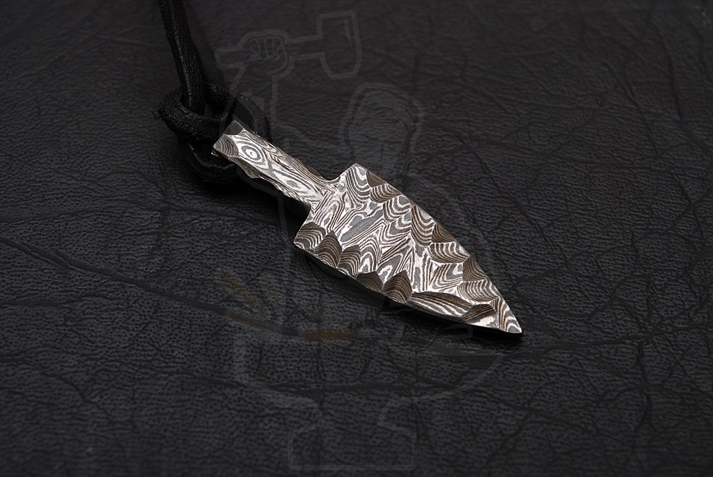 Damascus JewelryDAMASCUS PENDANT — Damascus Jewelry. ARROW HEAD PENDANT WITH FLINT KNAPPED PATTERN-DAMASCUS STEEL NECKLACE/PENDANT-WITH LEATHER STRAP