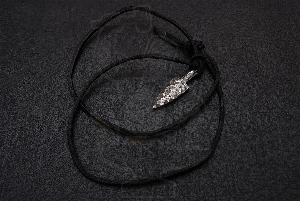 ARROW HEAD PENDANT WITH FLINT KNAPPED PATTERN-DAMASCUS STEEL NECKLACE/PENDANT-WITH LEATHER STRAP