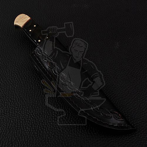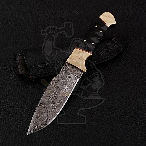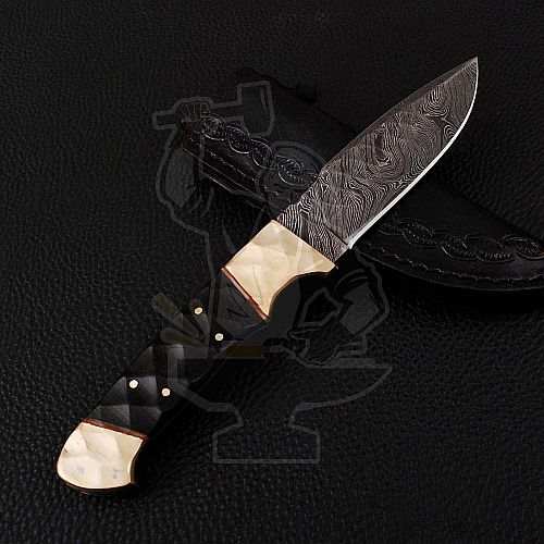 DAMASCUS SKINNER KNIFE — Damascus Hunting&Skinner Knives. Overall Length: 9.50″ • Blade Length: 5.00″ • Damascus Steel Blade Guthook Skinner Knife
