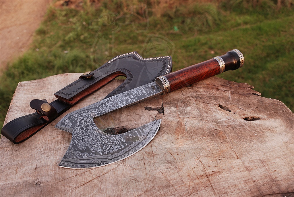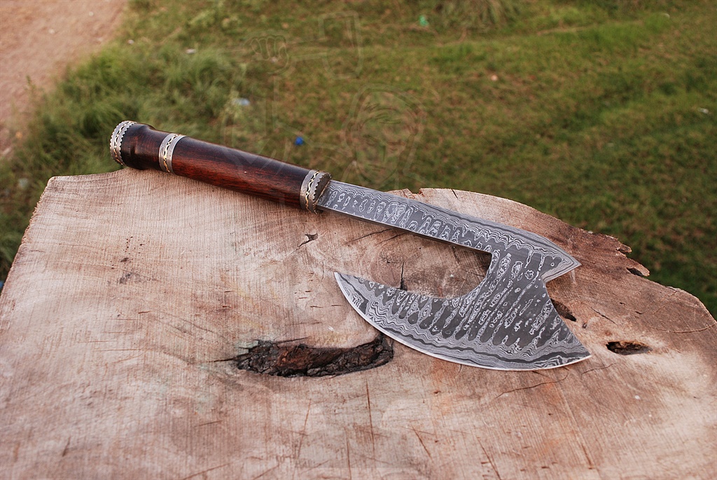 Tomahawks/AXESDAMASCUS TOMAHAWK — Tomahawks/AXES. Damascus Steel Tomahawk • Overall Length: 16″ • Blade Cutting Edge Length: 6.85″