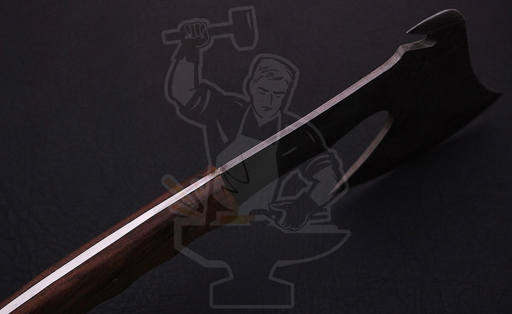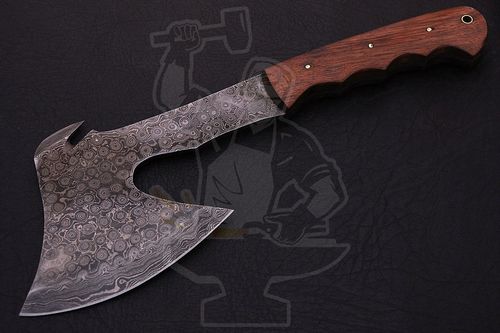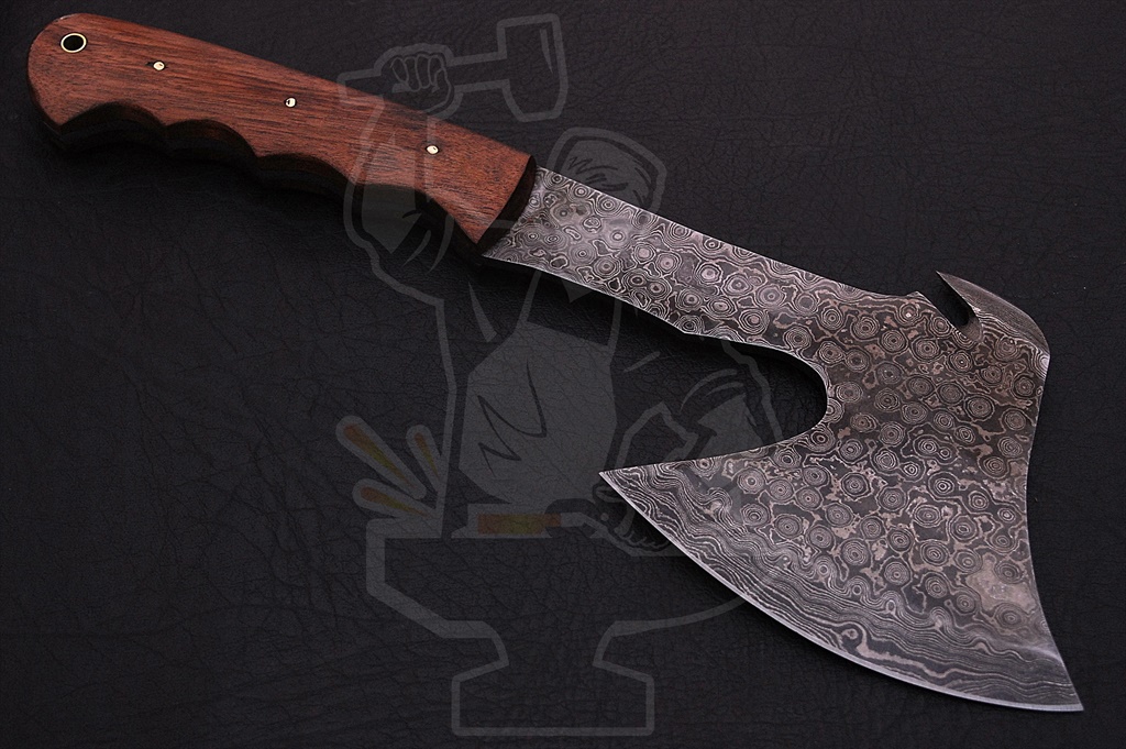 DAMASCUS TOMAHAWK — Tomahawks/AXES. Overall Length 12.25″ • 4.75″ Damascus Steel Full Tang Tomahawk • Walnut Wood Handle