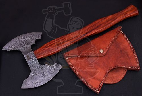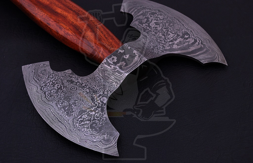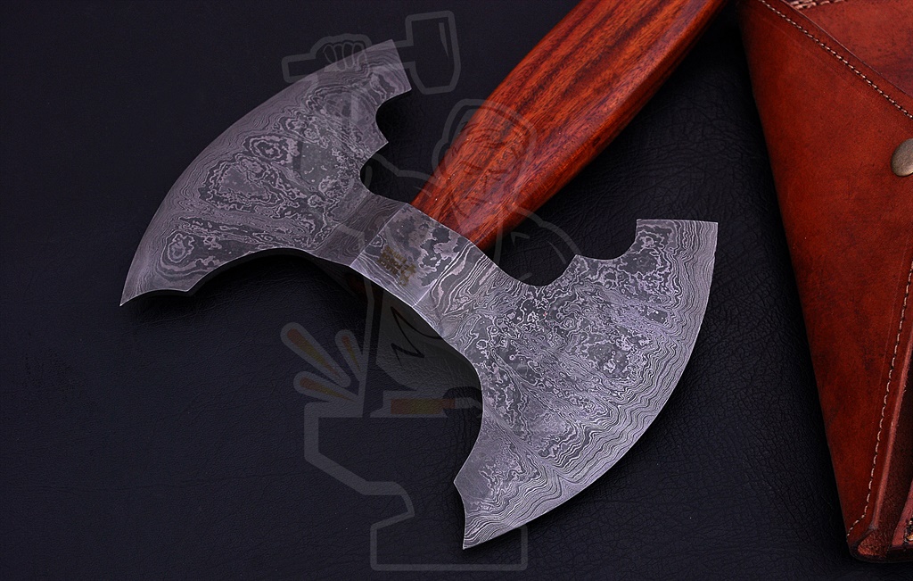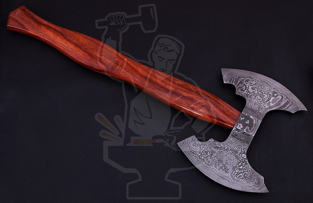Tomahawks/AXESDAMASCUS TOMAHAWK — Tomahawks/AXES. Overall Length: 23″ • Blade Cutting Edge Length: 6.5″ Each Head • Blade Width: 4″ Each Side