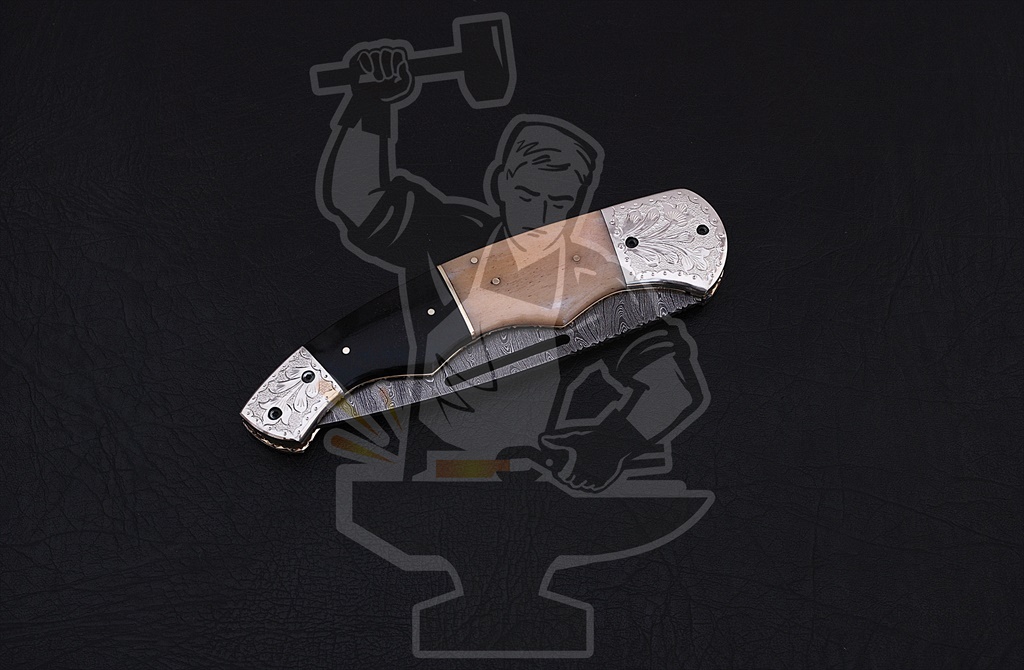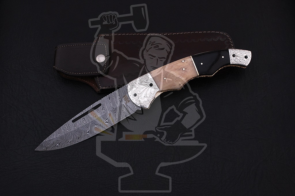 – Damascus Steel Drop Point Blade Big Size Pocket