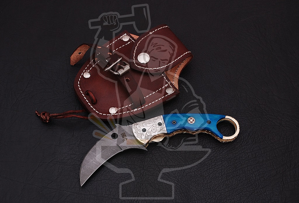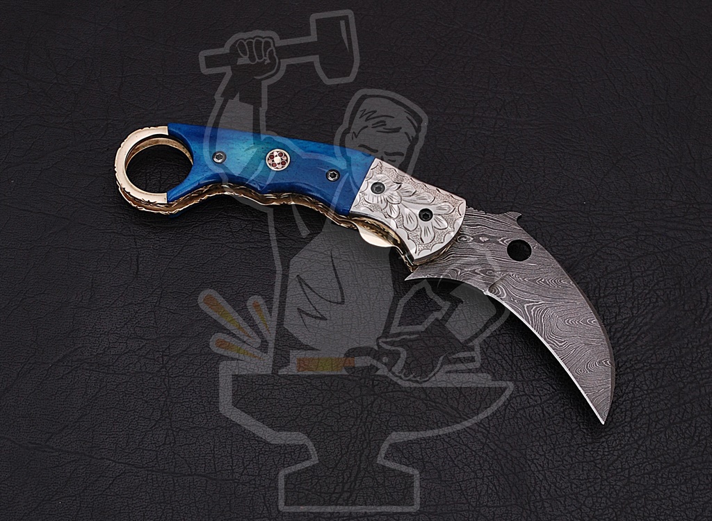 Damascus Pocket/Folding KnivesKARAMBIT Folding KNIFE — Damascus Pocket/Folding Knives. Open Length: 7.5″ • Blade Length: 3″ • Closed Length: 4.75″