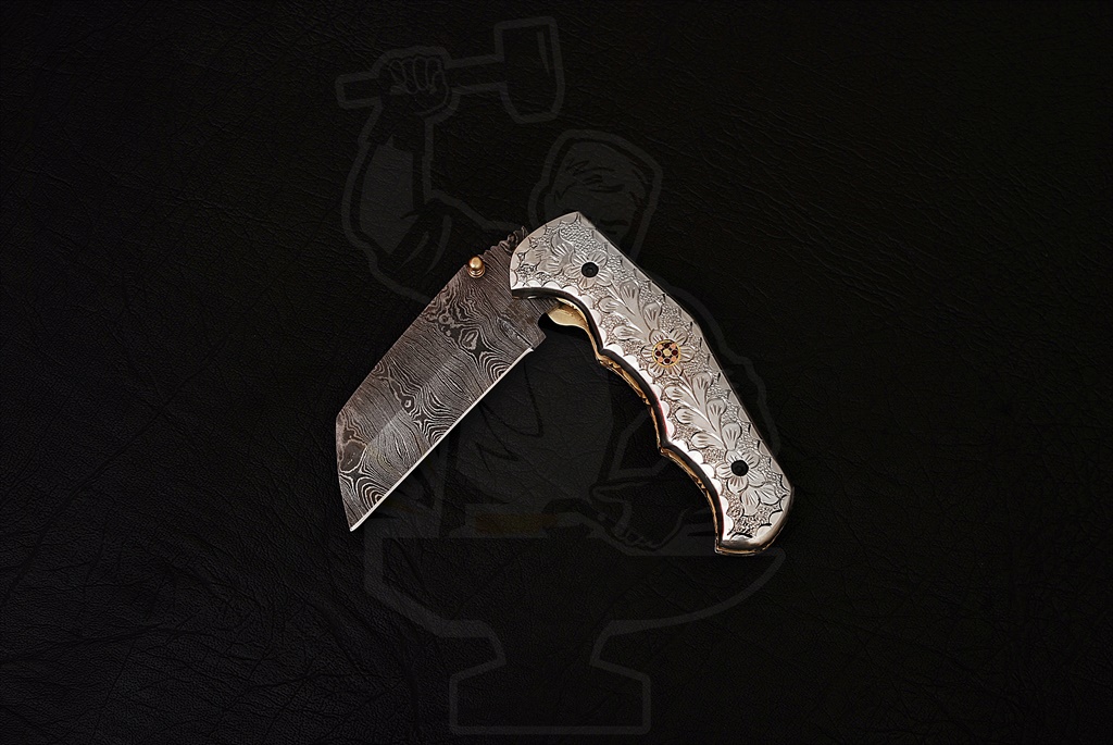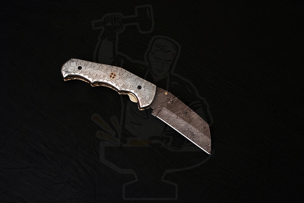Damascus Pocket/Folding KnivesLiner Lock Folding Knife — Damascus Pocket/Folding Knives. Damascus steel Blade Folding Knife • Type: Sheeps foot Blade • Blade: Damascus Steel (1095 & 15n20)