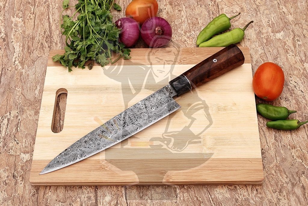 Damascus Chef/Kitchen knivesSantuko Chef Knife — Damascus Chef/Kitchen knives. Damascus Santuko Chef Knife • Overall Length: 14.15″ • Blade Length: 9.25″